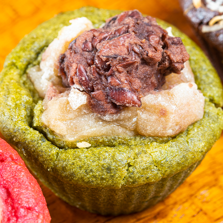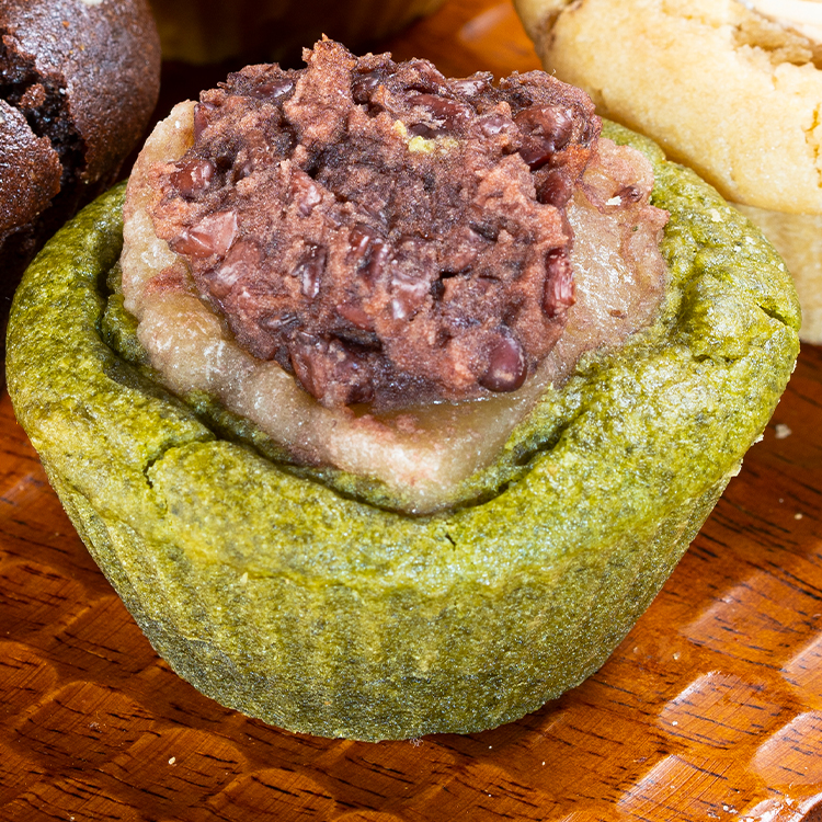 北海道千歳産シュンギクと十勝産小豆の粒あんと求肥のマフィン